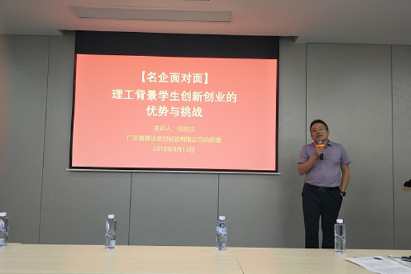 9月13日晚7时,广东普赛达密封粘胶有限公司创始人、总经理任绍志应邀于武汉理工大学西院图书馆报告厅为材料学院高分子专业学生举行题为《理工背景学生创新创业的优势与挑战》讲座。本次讲座由材料学院学工办田仕老师主持。