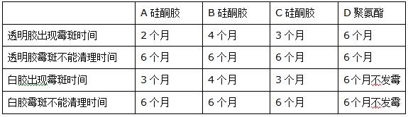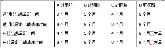 浴盆周边:长期浸水,有机物繁多,无光照,各类不同产品使用年限见表三: