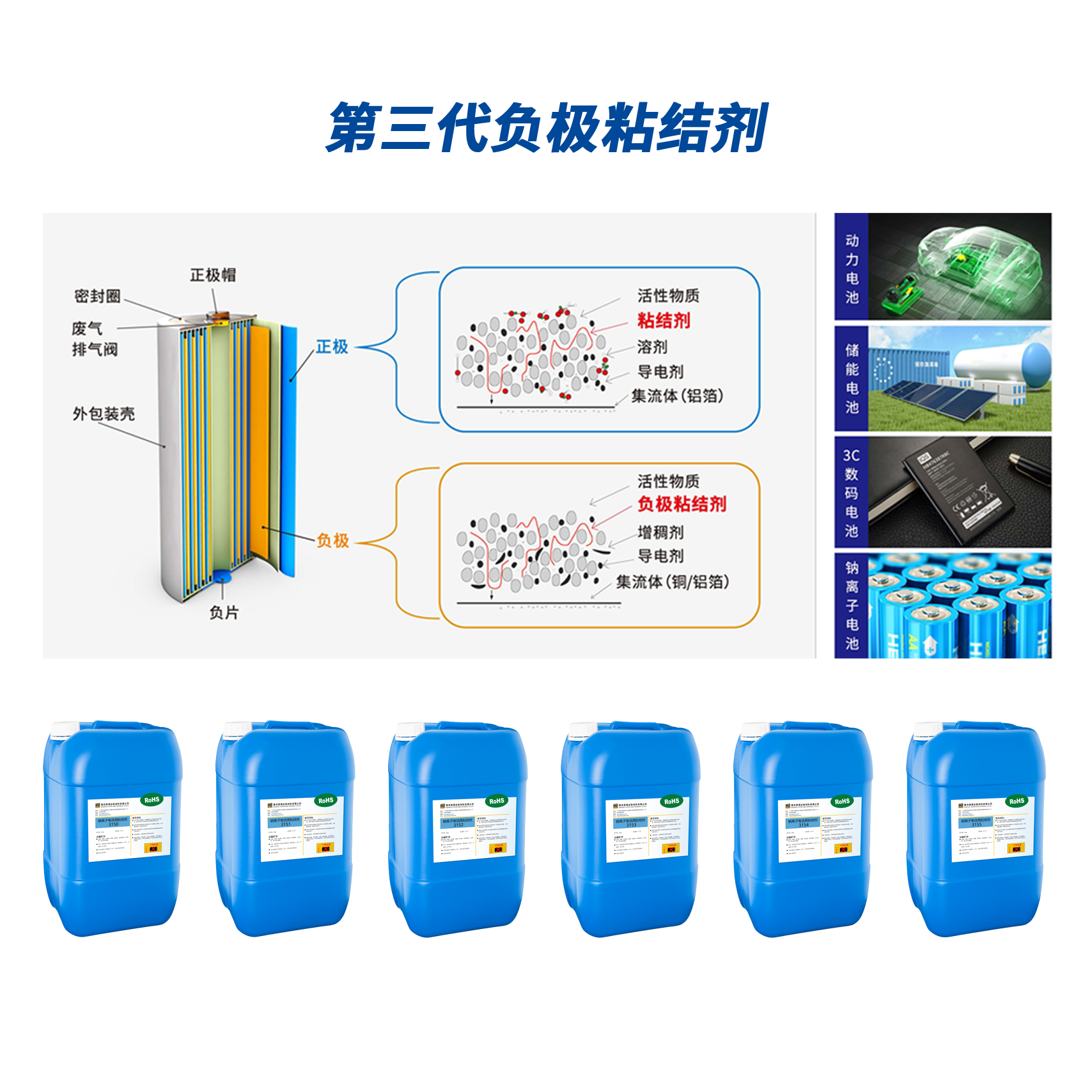 应用于各种锂离子电池及钠离子电池负极浆料,适用于动力电池、储能电池、3C数码及电动工具等各类锂离子电池。