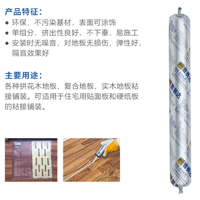 各种拼花木地板、复合地板、实木地板粘接铺装。可适用于住宅用贴面板和硬纸板的粘接铺装。