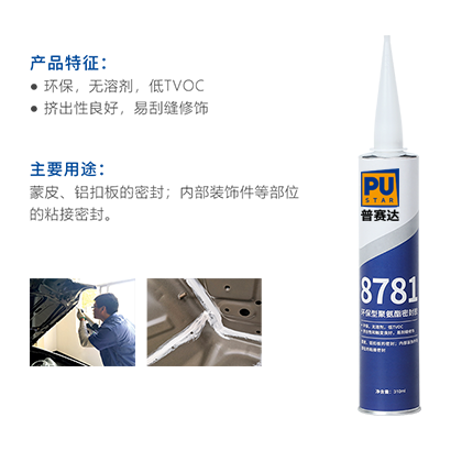 韧驰8781环保型聚氨酯密封胶是一种单组分湿气固化聚氨酯胶,环保低 VOC,具有良好的密封性能,对基材无腐蚀、无污染,对环境无污染,与金属、玻璃等多种基材粘接性较好。