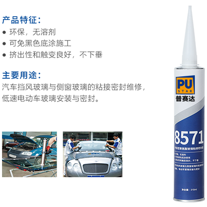 单组分湿气固化聚氨酯密封胶,具有优良的密封性能和内聚力,对被粘基材无腐蚀,无污染,与金属、玻璃等多种基材粘接性好。