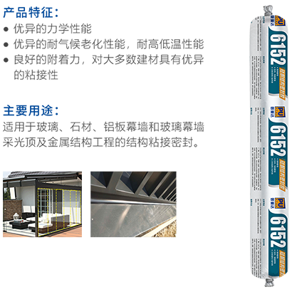 6152为单组分湿气固化密封胶,采用中性硅酮胶作为原料,对环境无污染,与金属、陶瓷、玻璃、石材等多种基材具有良好的密封粘接性能。